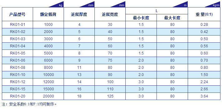RK01型(防火環(huán)型)吊裝帶參數(shù)表